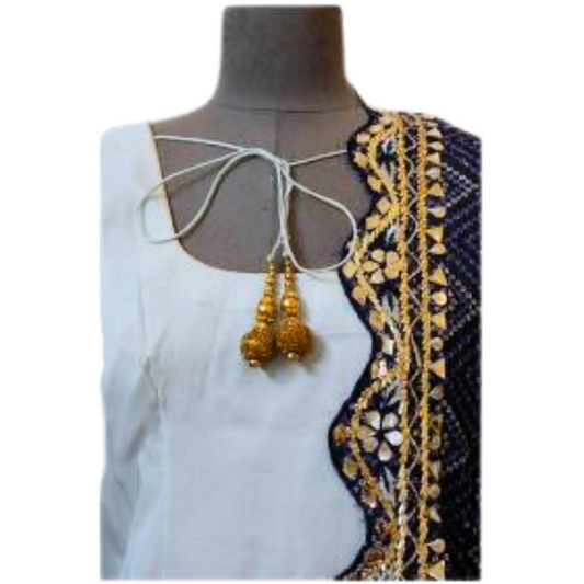 SHARARA SET WITH ICE BLUE KURTA AND NAVY BANDHANI SHARARA WITH INTRICATE WORK AND CHIFFON DUPATTA